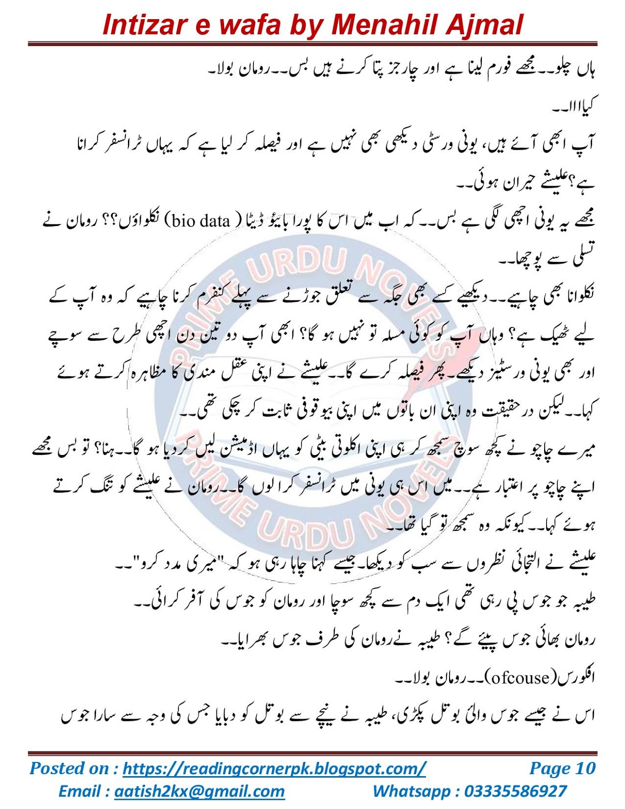 Intizar e wafa novel by Menahil Ajmal Episode 3